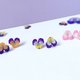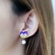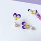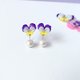< 手绘三色堇经典紫白黄色配棉棉珠后耳托耳环 >