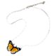 商品编号:ACC00047 商品说明:尾翼反光变色的变化,宛如一羽蝴蝶翩然起舞,将个人穿搭风格明亮起来。 刺绣尺寸:4.4cm*2.7cm 链长:约44cm (备长链5cm) 材质:不锈钢、刺绣