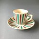 I baked it with a light cream colored glaze. I designed it with stripes of red and green tops. It is a thin lightweight cup. Cup diameter 7.7 cm, height 7 cm, cup capacity 180 cc.