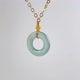 - 【名称】冰种蓝水翡翠平安扣项链 14K包金 【尺寸】15.7x15.7x2.6mm 【产地】危地马拉 【颜色】蓝绿 【备注】天然翡翠A货 【编号】EL20230302-14EL