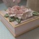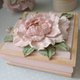 珠宝盒上的花朵采用装饰浆料,用调色刀以体积绘画技法制成。盒子边缘和盖子则以金色压克力颜料绘制。