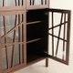 由北海道的大雪木工和设计师冈部求邦先生共同制作的CODAMA系列,以树枝为概念所设计出来的橱柜。使用深色调的黑胡桃木,做出厚重且沉稳的印象,木头的温润让您会愈用愈有感情,绽放出仿佛融入空间般地独特存在感。正面玻璃的部分,以非直线,而是稍微弯曲的细致线条为特征,做出让人连想到天然且自由的树枝设计。感受不到规则性的线条,仔细一看的话上下,以及左右门片皆对称。木制的橱柜往往会使整体的空间印象稍微沉重,但是这款柜子利用玻璃的部分和纤细的线条,带给人轻盈的印象。即使摆放心爱的物品也不会完全被看见,成为和美丽的木纹相互辉映,不同风味的身影。和同系列的家具搭配的话,洗练的设计会产生共呜,诞生出让整体房间能够感受到统一感和自然温润的空间。