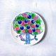 It is a pattern that a blue apple tree and a bird stopping at that branch sings.