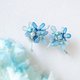 这款耳环灵感来自一个夏日午后的花园漫步,设计师偶然发现了一片蓝色的小花,灵感油然而生。耳环采用轻透的树脂材质,搭配珍珠和晶石点缀,精心打造出淡蓝色和蓝色的花朵造型,突显高雅和柔美。其轻盈舒适的特点特别适合夏天佩戴,不会给耳朵带来负担。独特的花朵风格充满自然气息,易于搭配各种服装