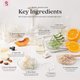 - Vitamin C : Powerful brightening agents Colloidal Oatmeal : Nourish skin especially sensitive skin Aloe Vera : Restore dry and damaged skin Apricot Kernel Oil : Good for dry skin as moisturizers Sweet Almond Oil: Protect skin from UV radiation Argan Oil : Boost elasticity and reduce wrinkles Coconut Oil : Rich in fatty acids increase elasticity