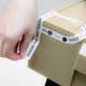 设计师特别挑选了厚质的卡纸,并压上方便拆开的虚线,包装纸条上印有可供纪录用的位置,客人购买后可撕下 note pad 置,并放在手抽位的标签专用间隔上,作收纳之用。