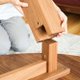 这款“Wild wood 圆矮桌”的特色是可调整的桌脚高度。默认的高度为34cm,但经由更换桌脚,可调整至20cm。这样的设计方便于躺着使用,从而提升了使用上的便利性,特别是和小孩一起玩耍或阅读时更为实用。