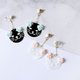 - 猫猫手工奶油黏土挤花垂坠耳环,黑色款