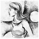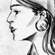 融合水墨画的流畅优雅与时尚插画的精致细腻,这幅黑白画作呈现出一位女孩的半身侧影,背景衬托着柔和的圆形白色光影。粗犷的笔触与细腻的线条相互交融,营造出神秘而宁静的氛围。
