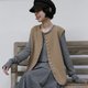 舒适与风格兼备的 100% 纯羊毛针织背心/驼色/251101-1
