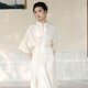 - 【杏色】新中式复古中国风 提花度假旗袍