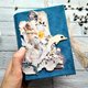 Contains: Tea dyed paper, Archival papers, Lace, charms, fabric cover