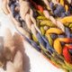- ▲以保暖的喜马拉雅羊毛编织而成的缤纷围巾 ▲渐层色的粗线条毛线,营造对比的时尚感