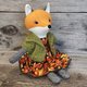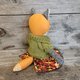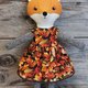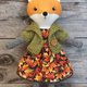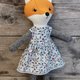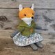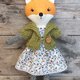 狐狸女孩毛绒玩具,高度 - 32 厘米(13 英寸),羊毛法兰绒,防过敏合成填充物。带叶子或浆果的棉质连衣裙(购买前选择一件或两件连衣裙)和绿色针织开衫。绣有眼睛和鼻子。所有衣服均可脱卸。如果您想要其他衣服 - 请联系我。