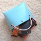 ◎厚实挺立的亮丽天蓝色皮革,搭配咖啡欧蕾棕色的车缝线,增添一抹亮点♪