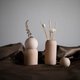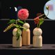 小木偶花器适合于单花摆饰,转动球体时可以改变花的角度亦可将球与本体分开使用。