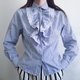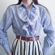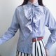 白蓝条纹棉质衬衫,正面饰有蕾丝荷叶边,非常漂亮