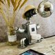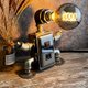 以铁管与金属配件打造俐落工业风外型,并加入可爱草帽与球泡暖光,呈现实用与造型兼具的桌面小帮手。