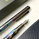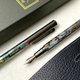 鹅銮鼻(ELUANBI):3952老山羊-以台湾知名特色景点命名,典雅书写基本款。采用手工制鲍鱼贝壳材质再一片一片再组合拼接,尽其可能接续每片的纹路。贝壳片都有天然的纹路及其天然的色彩,人工抛光后包覆在铜管上,再上一层厚厚的透明漆,可看得出接线但摸不到接线。天然纹路、五彩缤纷、绚丽夺目,美不胜收(自然纹路,优质随机出货)。笔款搭配水波纹路雕刻气密式笔盖,灰铬色电镀处理及配件,弹性机构笔夹设计,笔盖顶部刻有3952玉山LOGO标志。