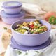 Mepal圆形密封保鲜盒系列,可以存放至在冰箱或冷冻库中,删除盖子后则可以放入微波炉中加热后直接上在餐桌上使用,圆形的上盖提供透明的视窗,让您可以一目了然内容物品,创新的柔性盖子100%不透气且防漏,气密的效果提供了食物更新鲜的保存时间,并且能在外出时方便随身携带。
