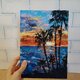 日落海景 原创压克力画 海滩与棕榈树艺术