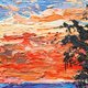 日落海景画。海滩画。 这是一幅原创压克力画。 画作绘制于硬纸板画板上,尺寸为 25 x 17,5 厘米 (9.8 x 6.9 英寸)。 这幅富有纹理的画作是使用调色刀创作而成。 此艺术品未裱框贩售。 运送:妥善包装保护。附有追踪码。