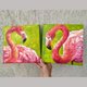 火烈鸟绘画 - 100% 手绘布面油画。这幅画有一对鸟的画是在担架上拉伸的画布上绘制的。
