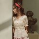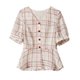 - "找寻面料的时候,我是一眼看中这个作为小衬衫的面料,觉得很清纯文艺。 V领设计更是属于夏天,满眼都是清凉感,再加上门襟处四颗醒目的撞色扣子点缀,使得小衫色彩更有对比感。