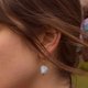 这款耳环由蓝色蕾丝玛瑙制成,这是一种玉髓。耳环中的这种宝石可以在巴西和印度找到。它们采用我们标志性的箍风格。