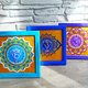 瑜伽脉轮艺术的这些美丽的彩虹曼荼罗是手绘彩色玻璃和木框架。