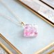 以浓郁的蓝色为背景,点缀花朵和珍珠,搭配闪粉与白色线条,设计出优雅的吊坠。利落的方形线条能让颈部线条看起来更为修长。深沉的藏青色是秋冬季节的绝佳搭配单品。