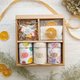 - — | 中秋限定・果干茶・手工饼干礼盒系列 | — 内含三罐茶(单罐内各装2种口味3包入)+自选配搭组合+提袋 ::: 礼盒尺寸:宽21.2cm x 长21.2cm x 高8cm :::