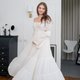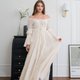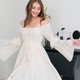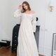 手工波西米亚风一字领洋装,海滩长洋装,波西米亚风白色婚纱