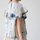 【棉質手工蓝染】荷叶边圆领雙色短袖