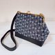 蓬松圆润的廓形搭配优雅的金色口金框,底部拼接与肩带则选用黑色的仓敷帆布,设计成适合成熟女性日常使用的风格。