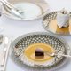 经典的菱格图案设计围绕在圆盘的四周,以渐变的放射手法来诠释古典的华丽风格,是一款极富装饰性的餐盘。