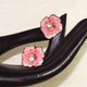 粉色花上缝有珍珠,紫水晶圆珠,也可换耳夹或耳钩。