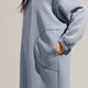 连帽休闲宽松洋装,舒适造型,随时都有好心情,胸前拉链细节,穿脱好方便,两侧弧形设计口袋,收纳保温双手皆适宜!,立体缇花三明治织法,保暖恒温更舒适