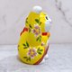 日本九谷烧招财猫 黄地紫富士樱花 3.8号