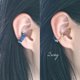 这款耳骨夹,以天然石青金石与金色切割珠,