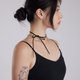 精致链条与麂皮缎带的结合,巧妙运用不同材质的对比设计出独特的层次美感。
