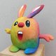 有趣的木雕当兔子受到惊吓时,就会发出雷声。彩虹下来拥抱他。变成彩虹兔子,由松木雕刻而成,涂有明亮的压克力颜色,尺寸12x14.5x10.5cm,一体雕刻,不再雕刻。