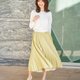 Pleated skirt made of trendy eco-leather (synthetic) material. Even a leather skirt can be pleated for a beautiful line. An item that is easy for people to take in at once ♡ The exquisite color and high-looking material that reduce the strong impression of leather Designer's particular points. The pleats emphasize the vertical lines for a clean look. The silhouette gives a feeling of shaking every time you walk, creating a calm femininity. The waist is made of rubber so you can enjoy it with a good fit. The color lineup that incorporates spring-like yellow is also attractive! Here are the points that designers are particular about ↓ ↓ point1 Eco leather pleated skirt A pleated skirt that is light, soft and firm. Firm pleated processing keeps a beautiful silhouette. Color lineup that incorporates spring-like yellow point2 Fluttering silhouette A beautiful silhouette with little spread Every time I walk, it sways and gives a feminine impression ♡ point3 Easy with elastic waist It's comfortable to wear, so it's one of the most popular pieces. <Details> ・ Eco-leather skirt finished with leather-like material ・ Total waist rubber specifications ・ No pocket ・ Material that is hard to see through even without lining material FEERICHELU's high-quality materials are different here! ・ No sheer feeling ・ Soft / firm fabric ・ Pleated High-class eco-leather material with a matte texture. Soft and silky to the touch. The pleats and silhouette are beautifully charmed with solid materials. -Thickness / slightly thin. ・ Elasticity / slightly available. ・ Sheer feeling / none. ・ Lining / None. Actual size "free" Length: 80 Waist: 66 Hem circumference: 336 Weight: Approximately 210g ● Due to the production process and the characteristics of the material, individual differences of about 2 cm may occur. Please note that. (Excluding some small items) Model size Yuki Kaneshiro ■ Model height: 167cm ■ Model wearing size: F size Material Synthetic leather Country of origin made in China Handling Precautions <Notes on color transfer and color fading> Please note that the color of this product may transfer to other clothing or underwear when it gets wet due to friction (especially when it is wet), sweat or rain. <Handling precautions> ● It depends on the individual. ● If strong force is applied, problems such as seams opening may occur. be careful. ● When you get wet with rain or sweat, the color may transfer to other clothing (especially white goods), so please be careful about colored products. ● Never cut the thread. It may cause holes or fraying. ● The odor of dyes and processed products may adhere to the product. If you are concerned about the odor, we would appreciate it if you could dry it in a well-ventilated and shaded place.