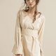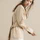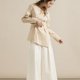 V领后交叉带饰的卡其色棉质上衣