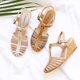 真皮手工编织楔型凉鞋 / 驼 / S2-18513L - 其他 - 真皮