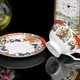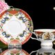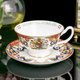 ✦ 此件骨瓷咖啡杯盘由英国御用瓷器品牌 Royal Worcester 精心创制,纪念伊丽莎白二世自1952年登基以来,荣迎六十载钻禧庆典(Diamond Jubilee)。作品以极其讲究之 Fine Bone China 制成,胚质洁白通透,杯身饰以全彩皇家徽章,辅以多层次描金与英式洛可可花纹,风格宏丽,气度非凡,完美诠释当代英国皇室精神。