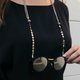 Urban style glasses chain is a great piece of accessory to have in your collection. Two sections chain made up of circular gold elements, double layered leather and colored beads. Material: Copper 18k Gold Plated Chain Lead and Mercury Free Gold plated hooks/clip on and chain won't cause any allergic reactions. Size>> Total length straps long 27.5 inches ,For round nepali rocks and tassels 3cm. **Available in 3 colours Ivory, Grey, Black** Each piece is hand-made, Our stone is natural so every pieces is unique. ******************************************** *********************************** Our brand story We are jewelry factory we export to many country, We are sourcing parts of material in may country but we produce in Thailand. So please remind that you will get the highest quality and unique style to be you.