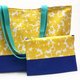 黄色花海进口日本棉布搭配蓝色素面久袋布拼贴而成肩背包!