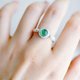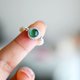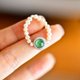 戒指周围镶嵌着一颗小淡水珍珠,中间则镶嵌着一颗美丽的绿玛瑙作为主石。