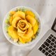 花材选用:厄瓜多尔尔尔永生玫瑰(黄)、永生绣球花(白/浅绿)、永生百万星(金)、永生虞美人(淡绿)、永生小星花(黄)、永生鼠鞠草(绿)、永生小足球果(白)、永生米香花(黄)、永生临花(橄榄绿)、永生佳那利(橙黄/白)、永生小蜡菊(白)、永生叶片(白)